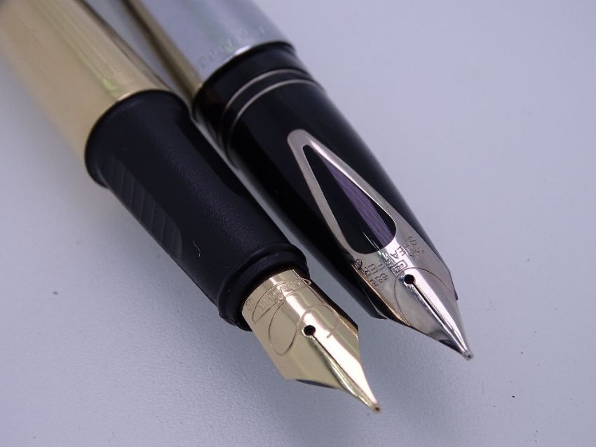 SHEAFFER - 1997-2008 Fluted 22ct Gold Plated Sheaffer Prelude fountain pen and ballpoint set with gold trim and steel nib to fountain pen. Made in USA. F/p fitted with converter. In original presentation case with instructions and 2 ink cartridges. NOS and 2000-2004 Metallic Petrol Blue and Chrome Plate Sheaffer Intrigue model 618 fountain pen with chrome trim and 14ct gold palladium plated inlaid nib. Made in USA. In original presentation case with instructions and 2 ink cartridges. NOS