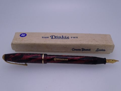 CONWAY STEWART - Vintage (1950s) Copper Rose and Black Marble Conway Stewart 550 "Dinkie" fountain pen, with gold trim and original 14ct gold nib. In original box