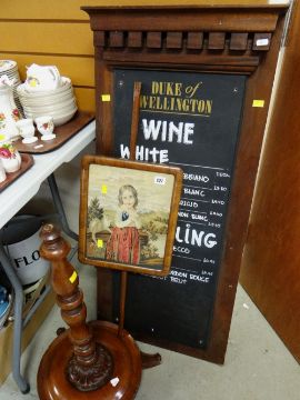 EARLY VICTORIAN WALNUT FIRE SCREEN WITH NEEDLEPOINT PANEL and two pub blackboards (3)