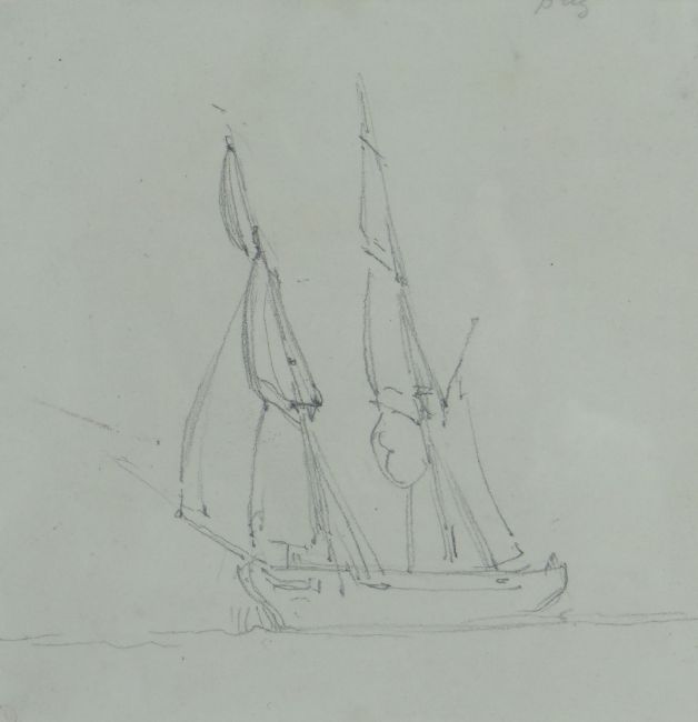EDWARD DUNCAN (1803-1882) three pencil sketches - comprising (1) scene of hay barge with two 'stackie' figures, titled in pencil and with circular embossed stamp, 7 x 10cms, (2) two mast sailing boat, embossed stamp, 13 x 12.5cms and (3) two sailing boats, signed with initials, embossed stamp, 11.5 x 19cms