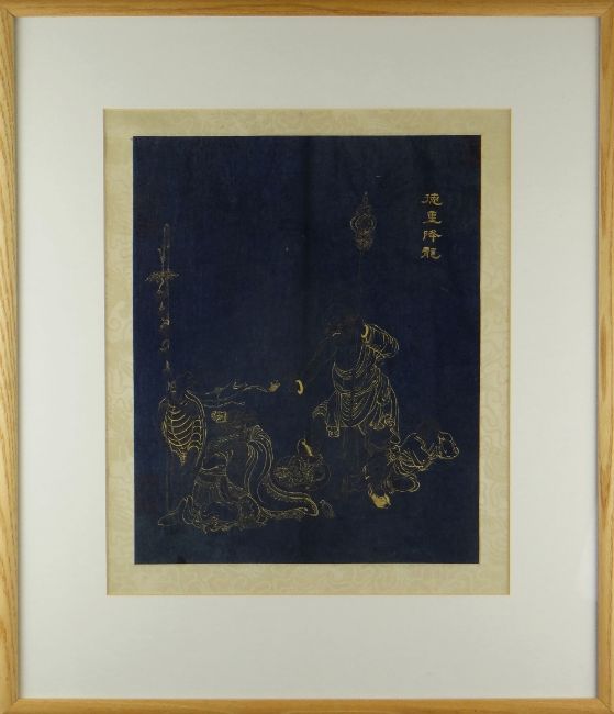 Auctioneer's Note: the subject depicts a Monk subduing a Dragon daemon which has taken on a human body, the top right red seal reads 'Supreme' and the left hand side reads 'Precious Collection of Xiang Zijing'. Xiang was a famous collector from the late Ming dynasty period but similar seals are often attached to works of art which have never been in his collection.