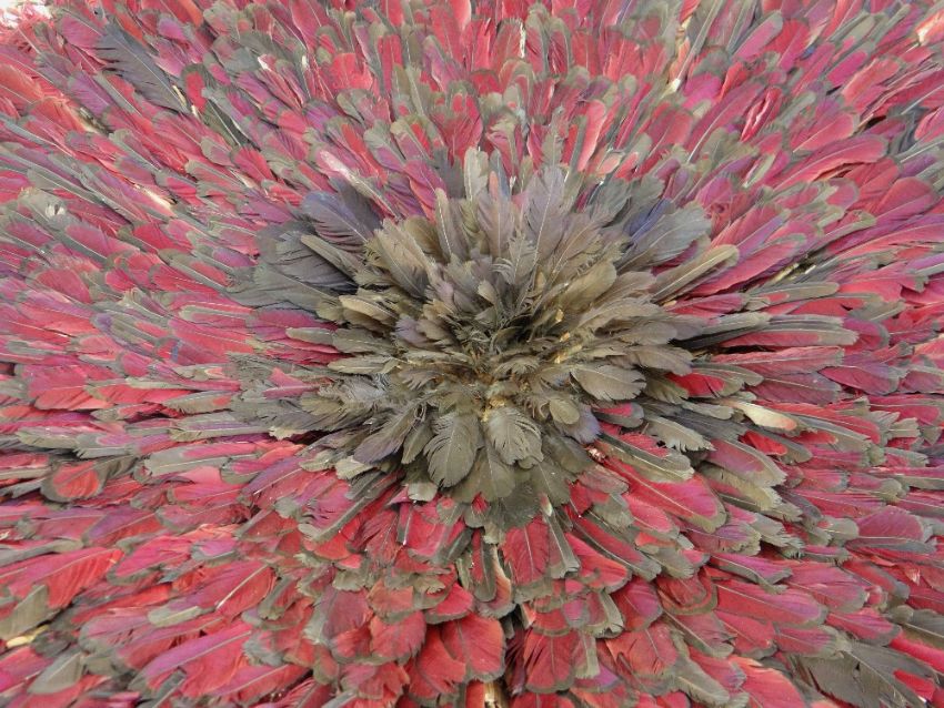 BAMILEKE FEATHER ELEPHANT DANCE HEADDRESS, Cameroon, 83cms diam.