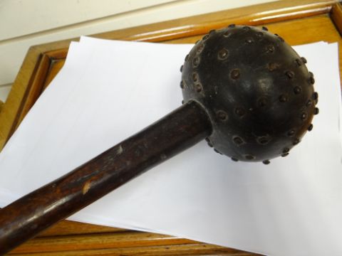 ZULU STUDDED KNOBKERRIE, South Africa, 63cmsThe head of the club is four inches diameter.The handle has started to split.