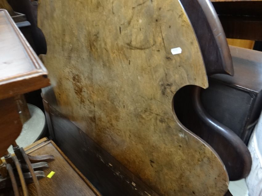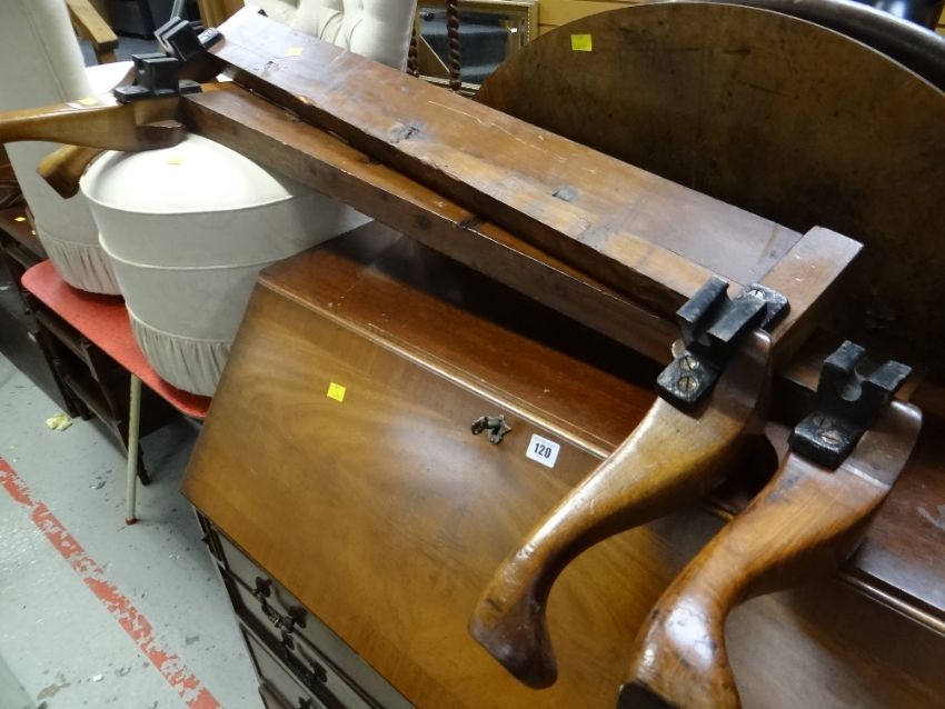 ASSORTED OCCASIONAL FURNITURE including Georgian-style mahogany bureau, Queen Anne-style walnut single bed steads, walnut demi-lune table, 1930s Chinoiserie Japanned china cabinet, two beech high chairs, corner unit and two decorative printsthe beds are matching, but there seem to be legs missing.The veneer on one head-board is also badly damage
