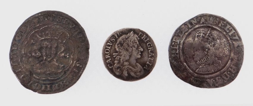 ELIZABETH I, SIXPENCE, 1567; CHARLES II, COIN, 1679; AND BELIEVED EDWARD III GROAT (3)