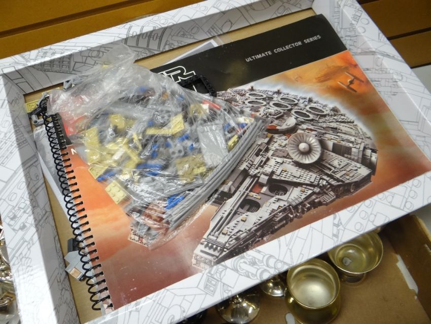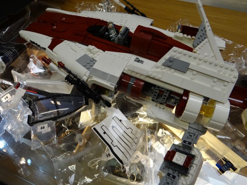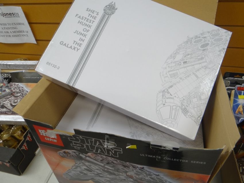 LEGO STAR WARS ULTIMATE COLLECTORS SERIES A-WING STARFIGHTER & THREE SETS OF CHINESE 'LEPIN' including the very large '05132' Millennium Falcon (all opened, built and reboxed)All the models have been opened, assembled, then diss-assembled and re-bagged and boxed.We are unsure if all the pieces are there, the vendor has assured us that all are complete.It would take to long to built and check so the lot is sold as seen.Regarding the A-Wing Lego set, it's hard to tell if all the pieces are there, they have not been bagged up properly after being built.The one figure is present.