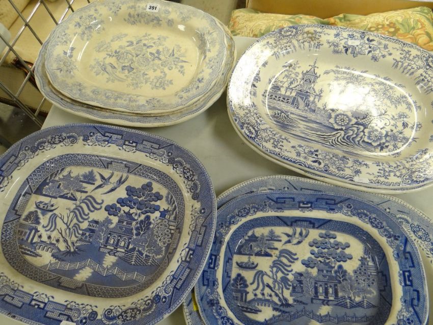 ASSORTED STAFFORSHIRE BLUE & WHITE PRINTED MEAT PLATTERS (8)