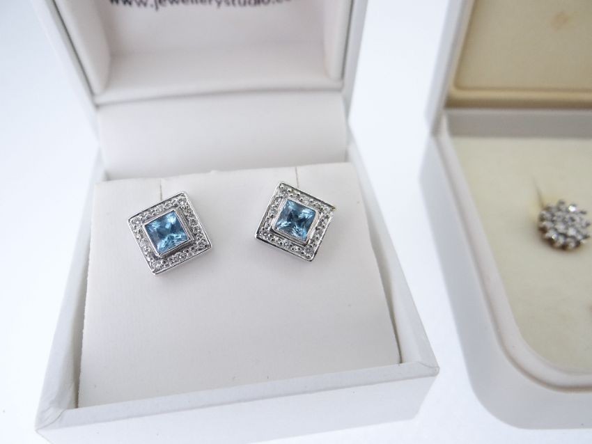 THREE PAIRS OF DIAMOND SET EARRINGS IN BOXES