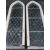 SIX ARCHED TOP STAIN GLASS & LEADED WINDOW FRAMES, three having red edging, three blue, 181cms H, 54.5cms W, 10cms D (some cracked pieces and losses apparent to the glass, the frames in various conditions including evidence of worm and losses to some of the frame bases)