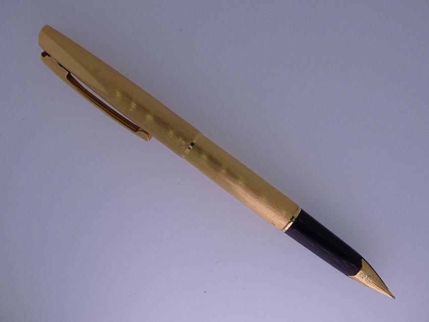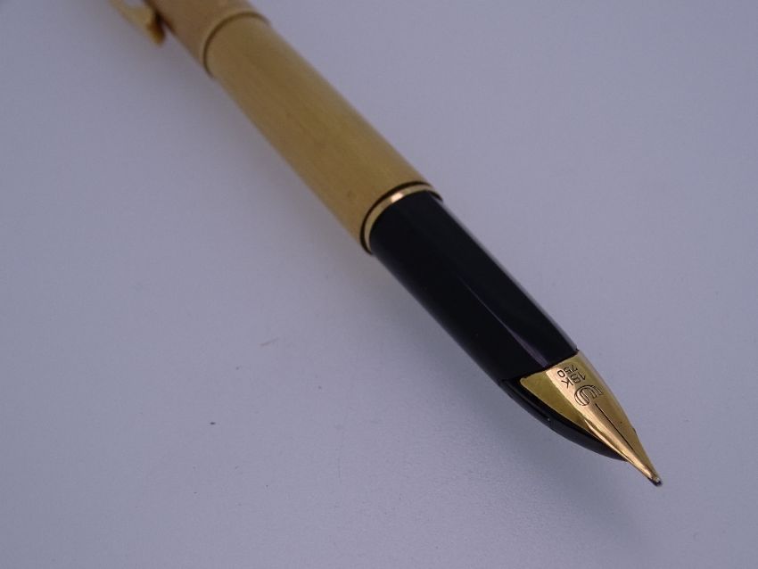 WATERMAN - Vintage (1970s) Brushed Gold Plated Waterman Concorde fountain pen marked 'Plaque Or G' on cap and barrel with gold trim and original 18ct gold nib. Fitted with original Waterman converter and in a Waterman box
