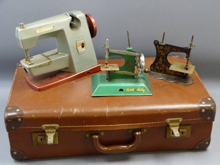 TOYS - Vulcan vintage toy sewing machine, Little Betty toy sewing machine and another in a leather case