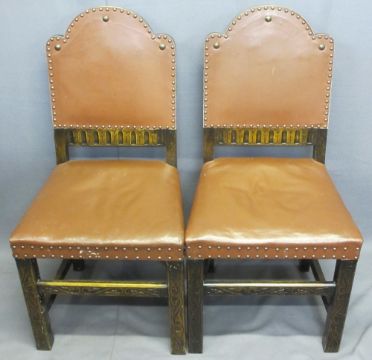 OAK DROP LEAF TABLE on turned supports with four rexine and studded dining chairs