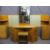 ART DECO STYLE LIGHTWOOD BEDROOM FURNITURE to include a continental style headboard with shaped ends incorporating a bedside cupboard and shelf and an angular mirrored dressing table and stool with attached label for 'Bowman Brothers Limited, Camden Town London', 216cms W the headboard