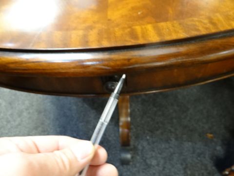 STYLISH VICTORIAN-STYLE CIRCULAR WALNUT EXTENDING DINING TABLE fan veneered top with perimeter lopers to support six curved rectangular leaves, 126cms diam to 186cms diamOne leaf has three small scratches (see photograph) and another has a little edge wear damage.The table top has a few small scratches, one is a little more noticeable.The lopers are all good, some are stiffer than others but when extended all hold the leaf’s well.The support looks good, there are some scratches on one leg.A couple of the rollers are stuck / seized stopping it from rolling well.