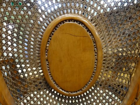 FINE SET OF THREE EDWARDIAN SATINWOOD & POLYCHROME DECORATED CHAIRS, in the Sheraton revival-style, the caned shield backs with floral crests of centering oval medallions pianted with putti, needlework stuff over seats, square tapering legs (3)The seat height is 46cm’sRegarding the carver, one arm is a little loose.There are various small chips to the edges but most of the paint looks good. The centre medallion looks good, the paint is starting to crack, very fine cracks.There are a few stains on the upholstery otherwise it looks good, no major damage.No worm.The other two chairs look and feel better. There is a split on one leg.All paint looks good.All upholstery looks good, again the paint on the medallions is starting to crack.