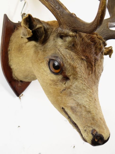 TAXIDERMY: MOUNTED FALLOW DEER with antlers on shield shaped plaque