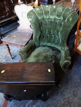 ASSORTED OCCASIONAL FURNITURE including five dining chairs, drop flap mahogany table, stick stand, button back bedroom chair ETC (13)