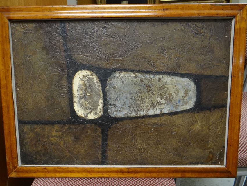 ASSORTED WATERCOLOURS & PAINTINGS, including abstract oil on board signed Widgery '62, ETC (6)