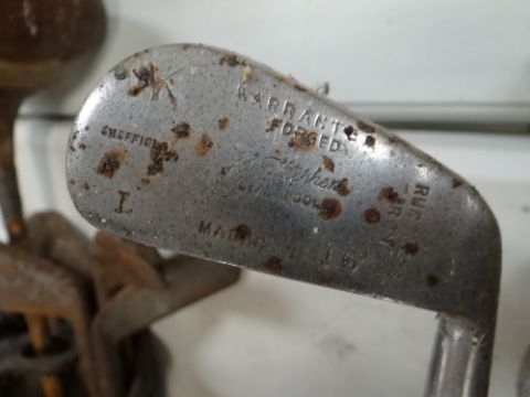 TWO VINTAGE GOLF BAGS containing assortment of woods and irons