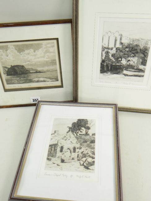 PHILIP E HARRIS three etchings - Tenby related with titles, comprising 'Seaman's Chapel, Tenby' (A/P), 'Tenby Harbour II' and 'Goscar Rock, Tenby' (13/50), each signed, 19 x 13cms, 19 x 15cms and 13.5 x 17.5cms (3)