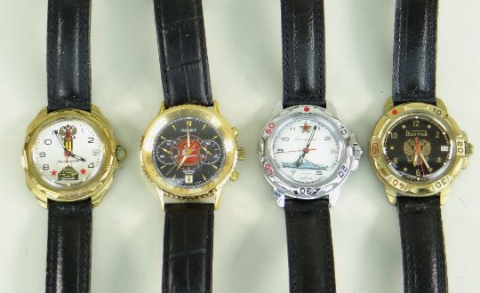 FOUR RUSSIAN WRISTWATCHES various makers, dials and backs inscribed in cyrillic (4)