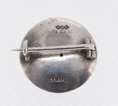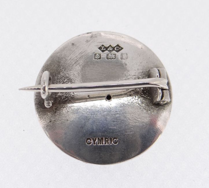 ARTS & CRAFTS CYMRIC SILVER & ENAMEL BROOCH, by Archibald Knox for Liberty & Co, Birmingham 1905, planished circular with stylised leaves, 2.4cms diam.