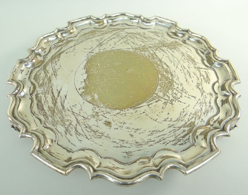 GEORGE V SILVER SALVER, SHEFFIELD 1934, BY WALKER & HALL with pie crust edge, 28.7 t.oz, 31.5cms diam.