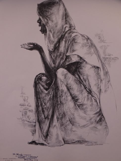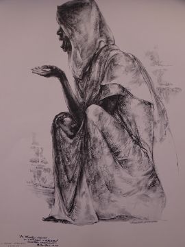 ELTON CLAY FAX lithograph print unframed - titled 'Bread' (Ethiopia) from the Black & Beautiful series, produced 1964 - 1968, signed with dedication for 'Mischa Kudian, a colleague and delightful travelling companion Elton Fax 1973', 56 x 33cms