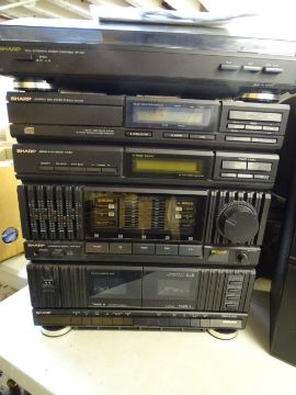 SHARP SEPARATES HIFI STACKING SYSTEM & SPEAKERS, Hitachi flatscreen tv and a Toshiba DVD/video recorder and player E/T