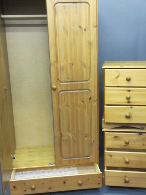 MODERN PINE BEDROOM FURNITURE - two door wardrobe and a pair of bedside chests