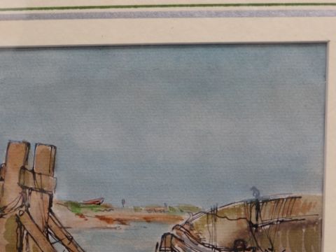 GYRTH RUSSELL watercolour - East Fleet Estuary, Wells-next-to-Sea, Norfolk with boats, titled bottom left 'Wells, Aug '48', signed, 19 x 28cms Provenance: private collection Cardiff Presentation & Condition: no problems, later framed and glazedThere is one large crease on the left side going diagonally to the bottom.