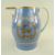 RARE 18TH CENTURY SWANSEA CAMBRIAN PEARLWARE JUG of bellied form with ear-shaped loop handle, blue glaze with two continuous chequer bands, gilt decorated with opposing laurels containing a stag and tied ribbons and with gilt 1787 under spout, 22cms high