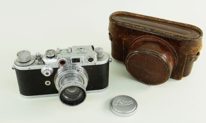 Condition Report: chrome worn on focus ring and winding knob, erc with loose base, minor wear and tear.