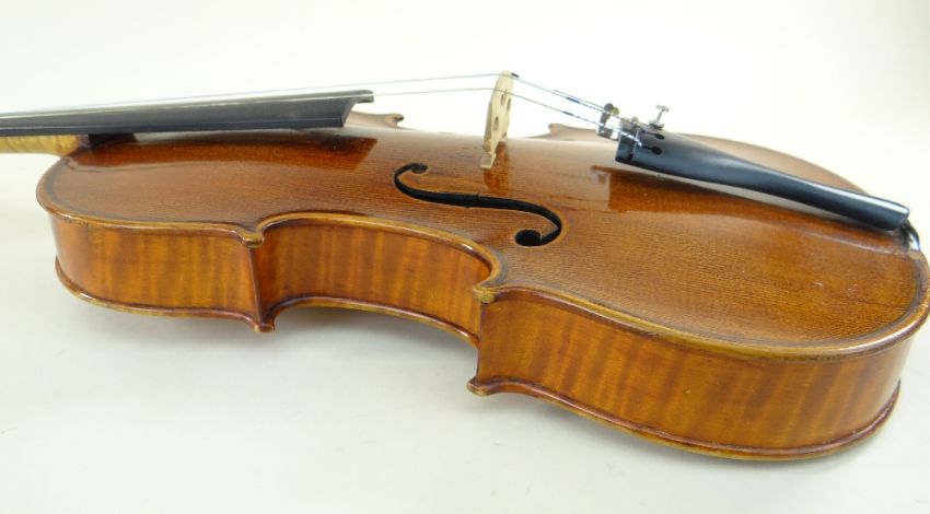 Condition Report: one string missing, varnish worn form edges to back, small patch of varnish loss top right table and upper right bout commensurate with playing action, generally very good playing condition