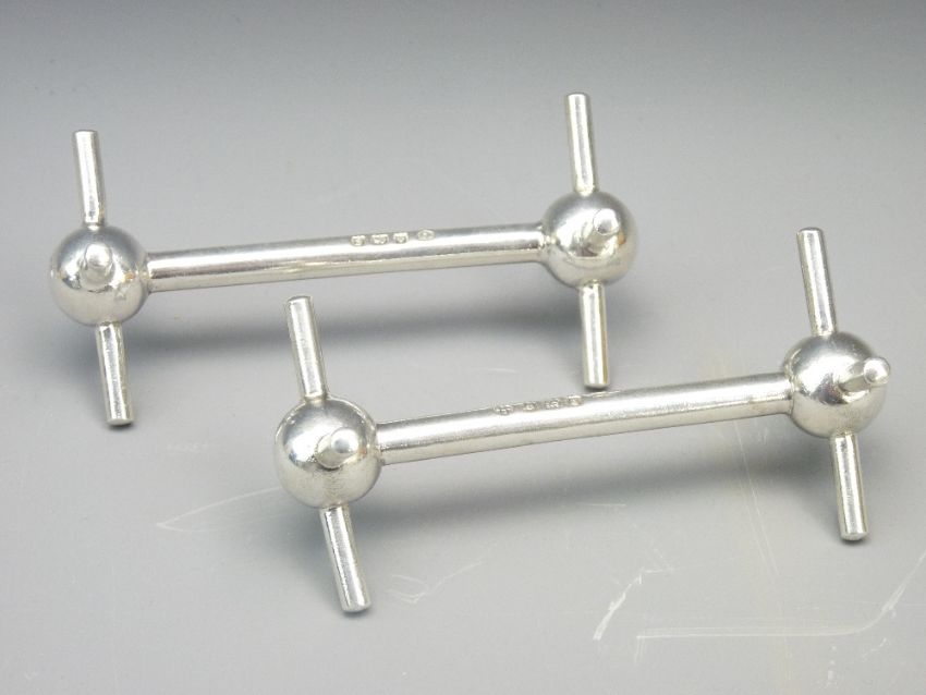 SPUTNIK END EDWARDIAN KNIFE RESTS, a pair, Birmingham 1906 in solid silver by G & J Bushell, 4 troy ozs gross