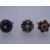 THREE DRESS RINGS - 1.a nine carat gold with floral seven coral and six pearl setting, 4.5 grms, size L/M - 2. a nine carat gold dress ring with floral heart setting of eight green jades and five pearls, 4grms, size L and 3. a believed silver dress ring with circular set of seven small round opals and six leaf shaped garnets, 5.8grms, size N