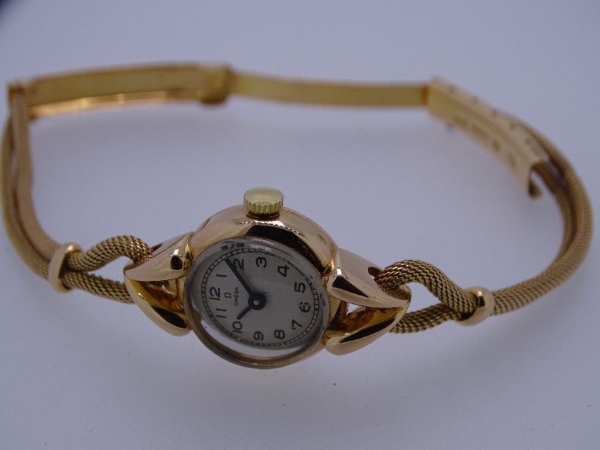 LADY'S 18CT GOLD OMEGA CIRCULAR DIAL WRISTWATCH with eighteen carat gold rope twist twin strand bracelet, 20grms