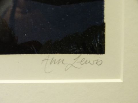 ANN LEWIS limited edition 9/18 lino cut - stormy Conwy Valley landscape, signed, 29 x 58cms