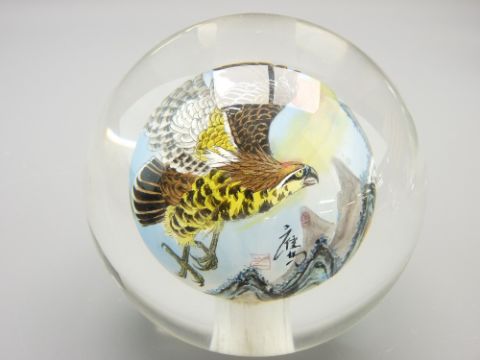 VICTORIAN GREEN GLASS DUMP and other interesting glass paperweights including a Chinese interior painted example depicting an eagle in flight and a boxed Rosenthal diamond shape example