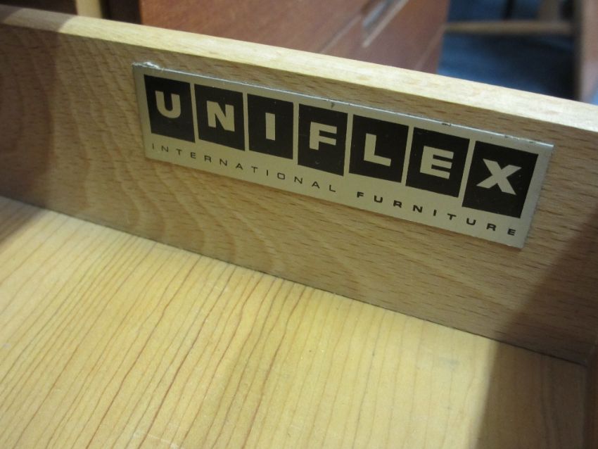 STAG MINSTREL MULTI-DRAWER CHESTS (2), 112cms H, 82cms W, 46cms D and a mid-century six drawer chest/sideboard by Uniflex, 73cms H, 121cms W, 45cms D