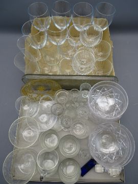 TRAY & BOX OF MIXED DRINKING GLASSWARE and sundae dishes