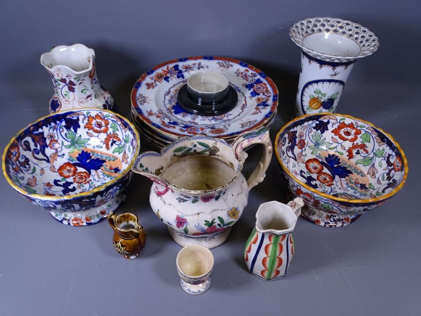 MASONS IRONSTONE PEDESTAL BOWLS, Allerton's serpent handled jug and an assortment of similar china