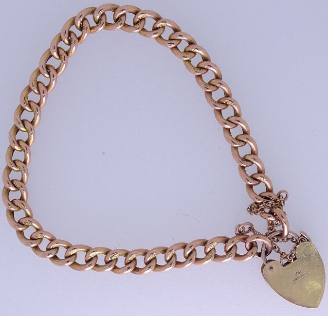 NINE CARAT GOLD CURB LINK BRACELET with padlock clasp, fully stamped, 8.5grms