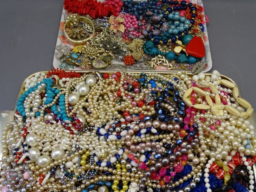 VENETIAN & OTHER COSTUME JEWELLERY and necklaces, a large quantity on two trays