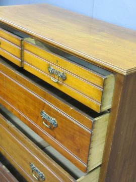 EDWARDIAN MAHOGANY CHEST of two short over three long drawers on a plinth base, 120.5cms H, 122cms W, 55cms D