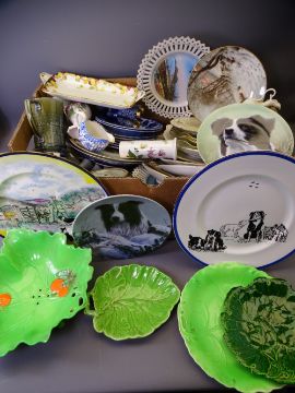 DECORATIVE WALL PLATES, GREEN LEAF, FLOW BLUE and other decorative china