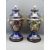 VIENNA STYLE VASES & COVERS, a pair on wooden plinths, overall H 52cms