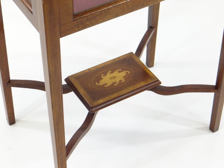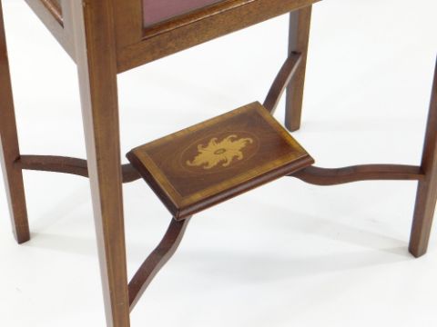 SHERATON-STYLE MAHOGANY & SATINWOOD CROSSBANDED BIJOUTERIE CABINET, glazed sides and hinged top above marquetry platform stretcher, 59 x 41 x 76cms