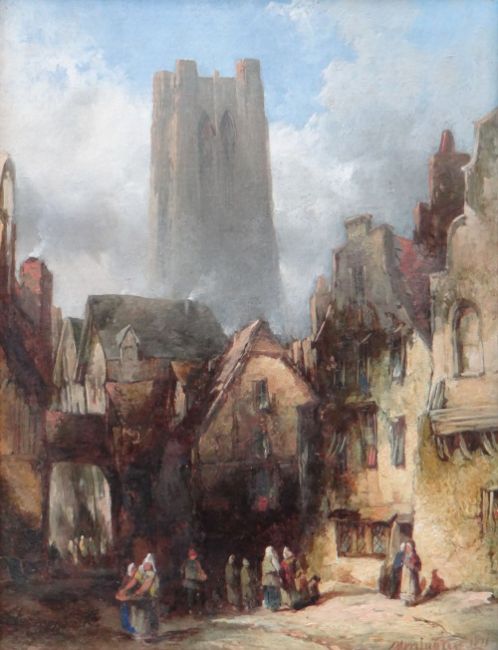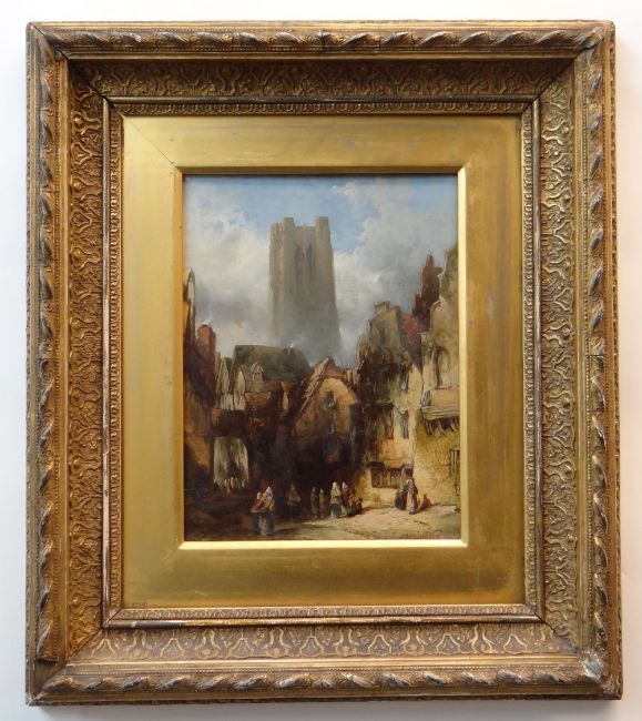 ALFRED MONTAGUE (1832-1883) oils on board, a pair - At St Omer and Old House at Rouen, signed and dated 1871, both inscribed and numbered verso, 23 x 18cms (2)