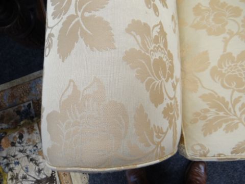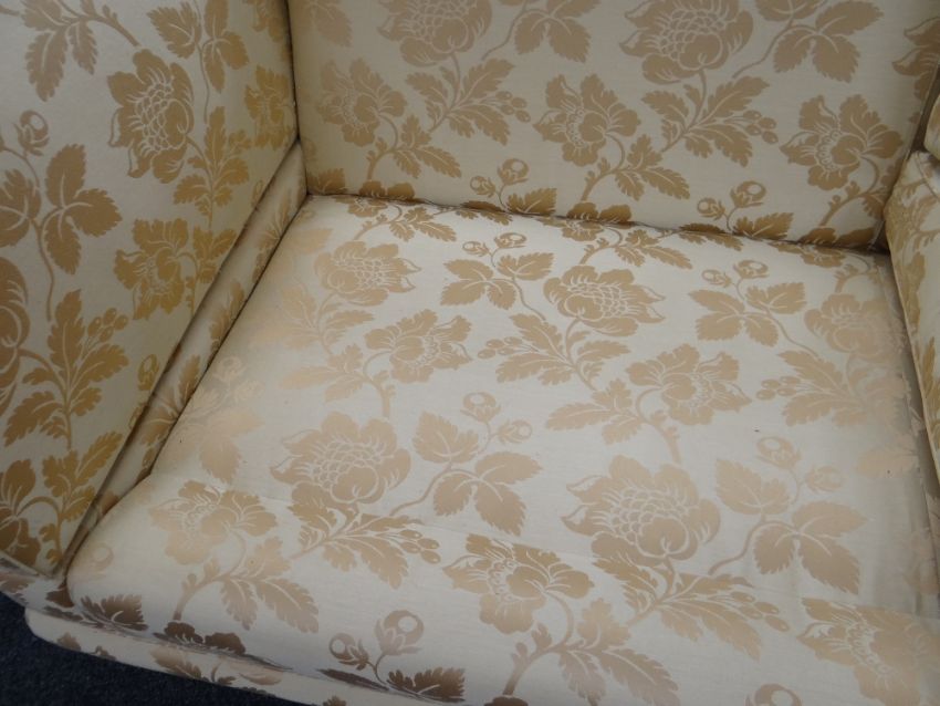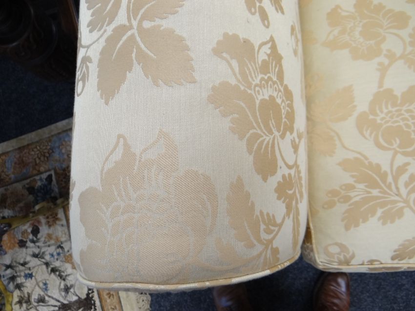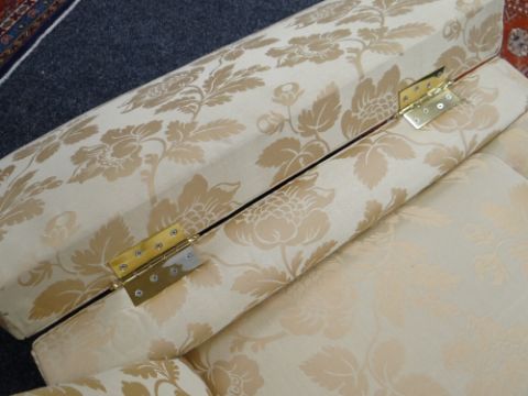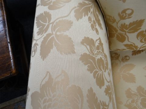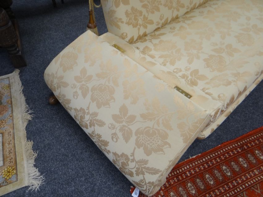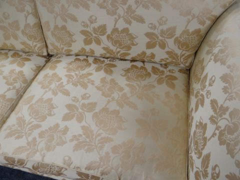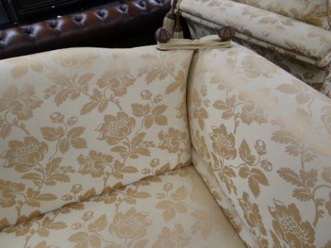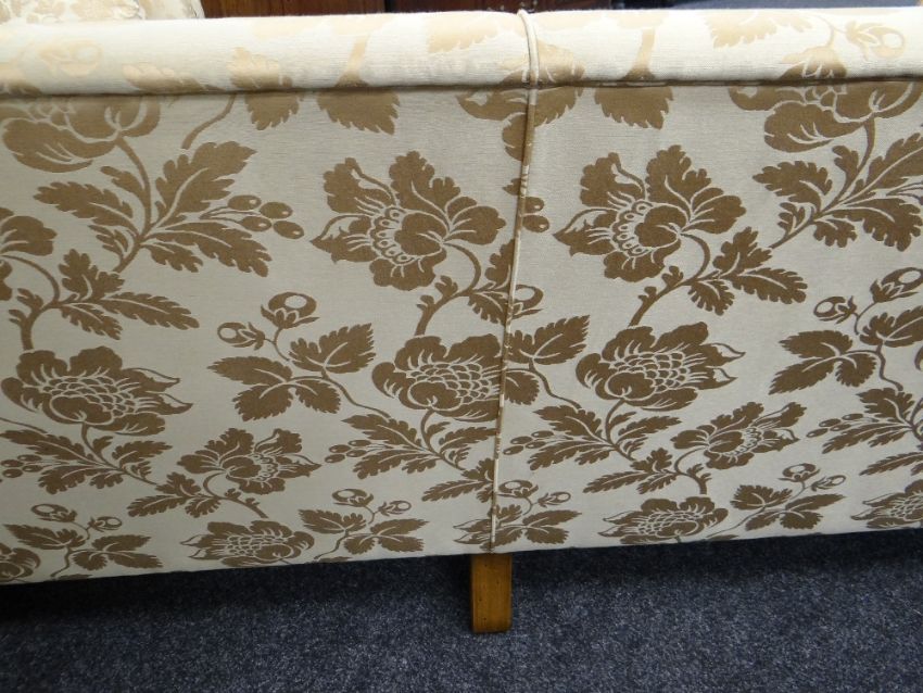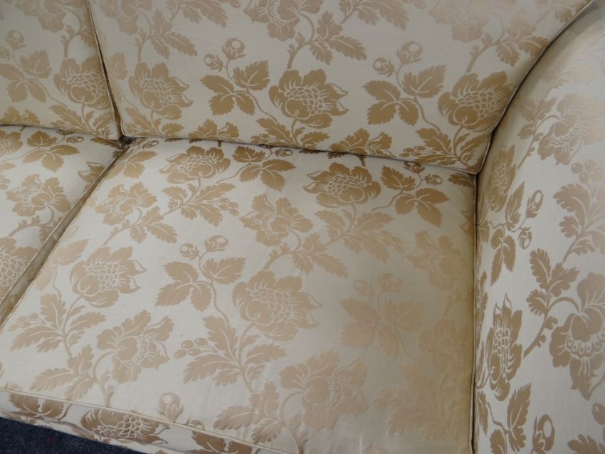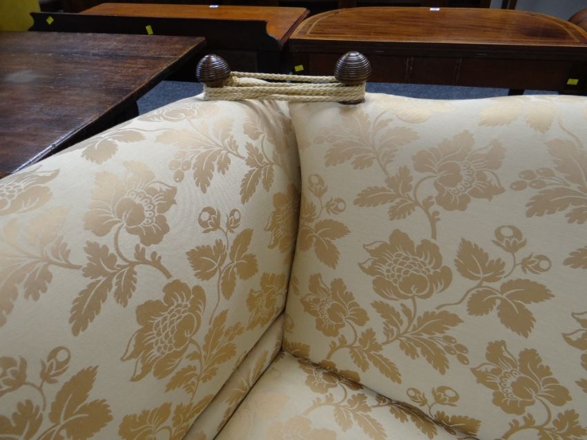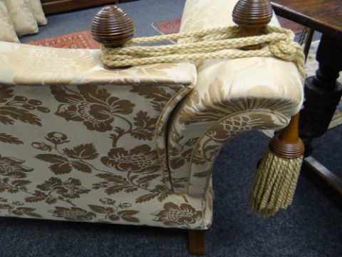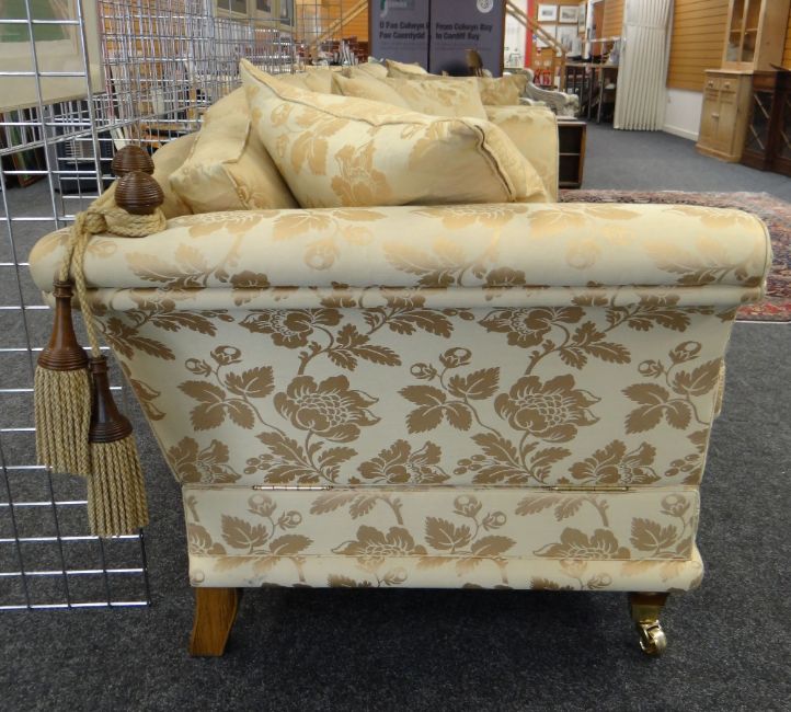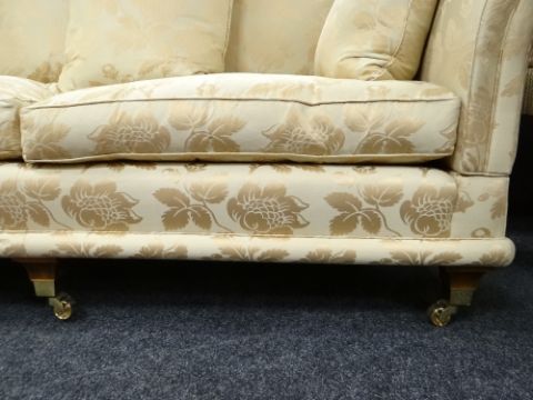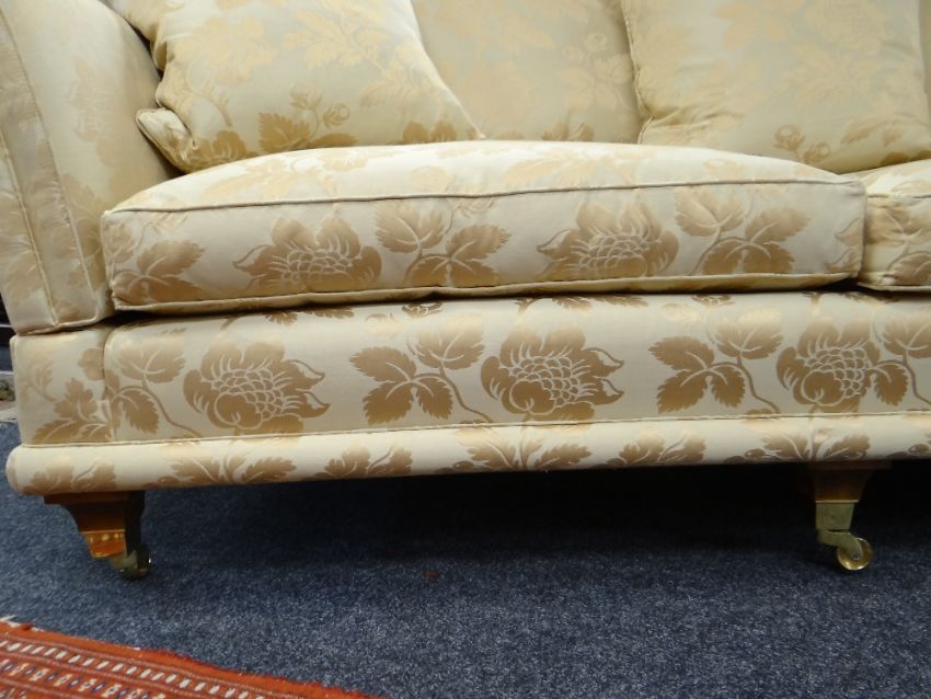 DAVID GUNDRY LARGE DROP-END OR KNOLE SOFA, 'Florence' model, in gold floral damask fabric, 234 x 107 x 89cms
